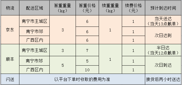 (以上價格表由海吉星物流網點提供)