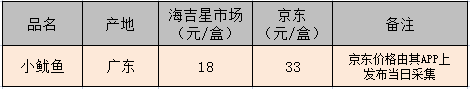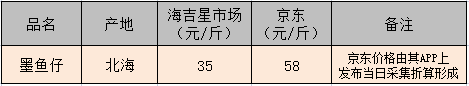 同品類墨魚仔海吉星市場與京東價格對比