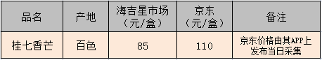 同品類芒果海吉星市場與京東價格對比