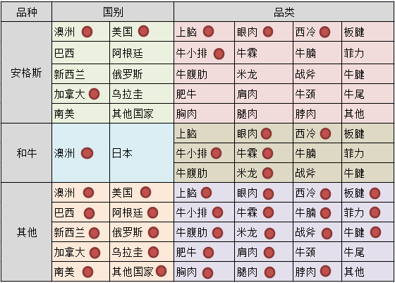 海吉星凍品市場牛肉經營品種匯總