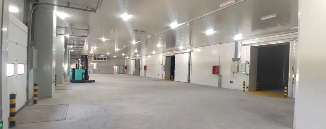 (1)冷凍冷鏈倉儲建筑面積6800平方米,庫容量為26200噸,主體工程為鋼結構,倉庫內高9.4米,局部2層內高4米。用實體防火保溫隔斷墻分為冷凍庫(2個)、冷藏庫(2個)和變溫庫(2個、溫度為5℃至零下30℃)共6個獨立庫區,內部配有南北雙向封閉溫控分揀穿堂,配有滑升門、升降平臺、巧固架和鋼制托盤。