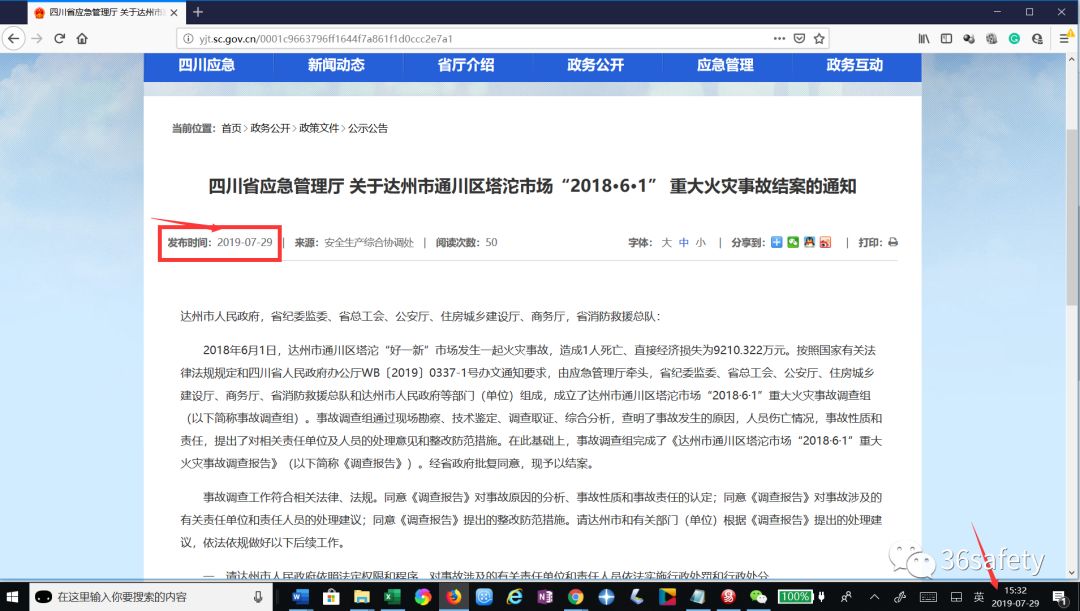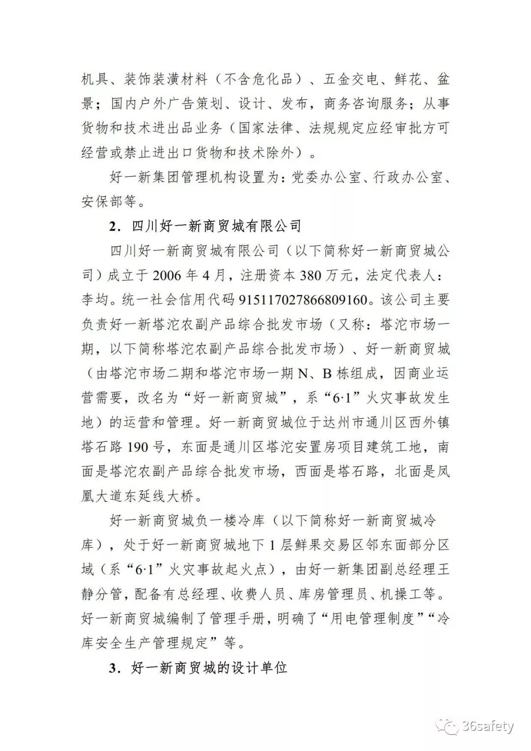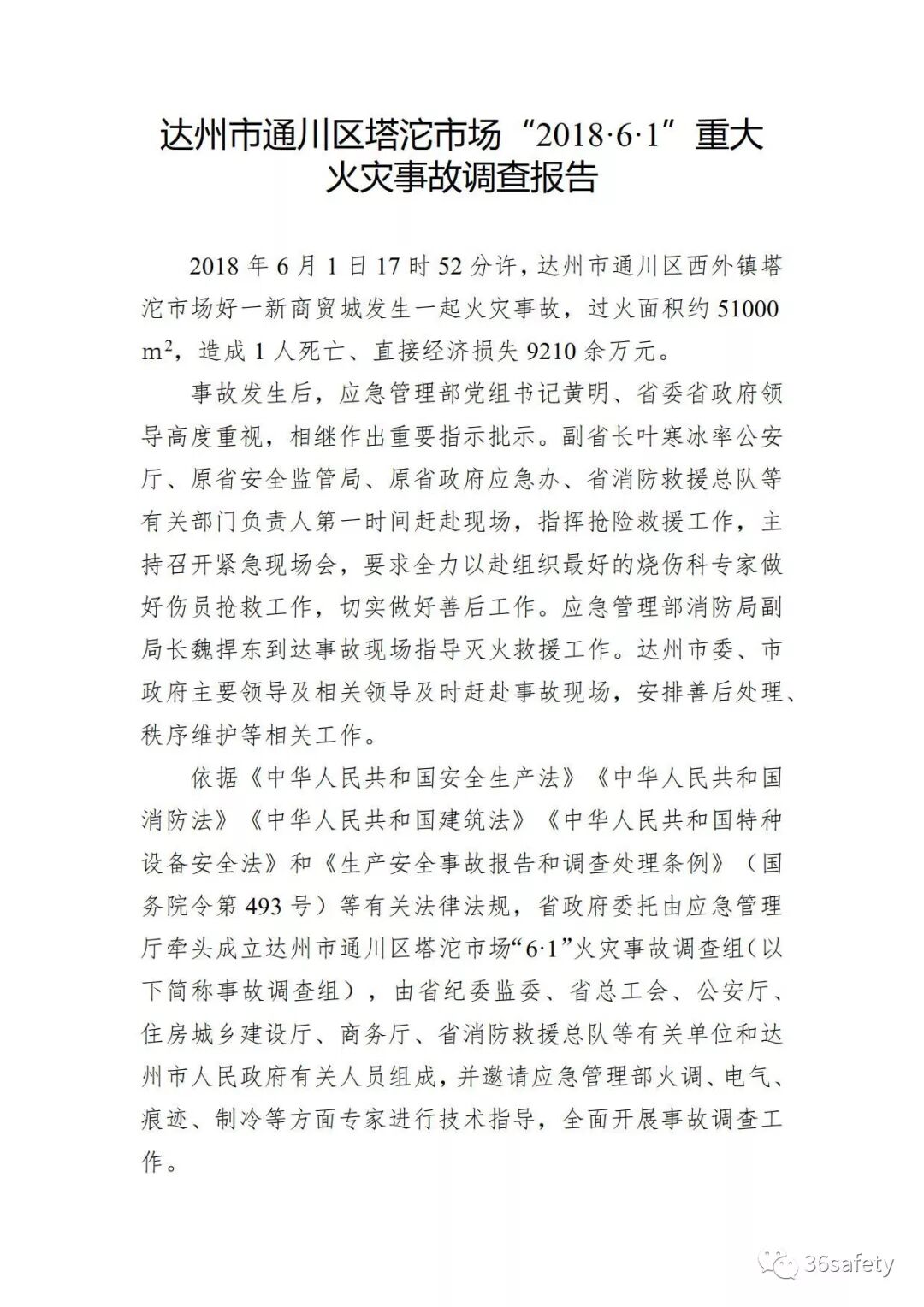 2019年7月29日,四川省應急管理廳發布關于達州市通川區塔沱市場“2018?6?1” 重大火災事故結案的通知。