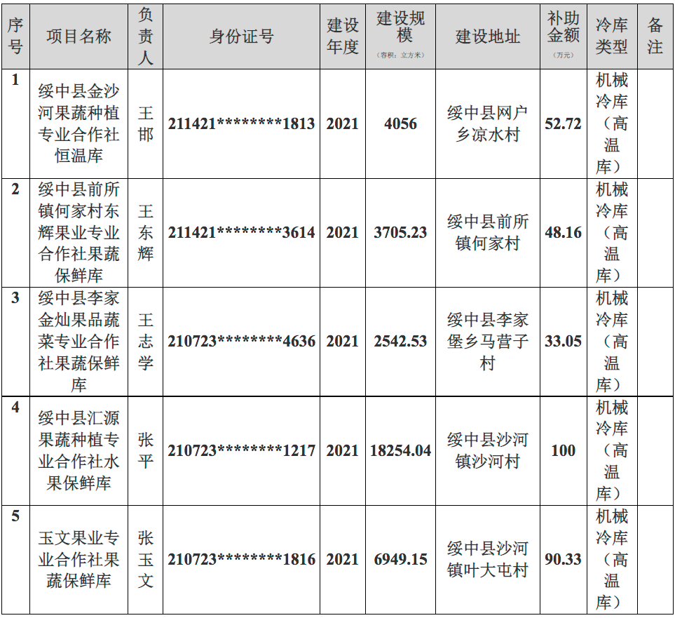 2021年遼寧省(綏中縣)農產品產地冷藏保鮮設施建設項目驗收合格名單公示