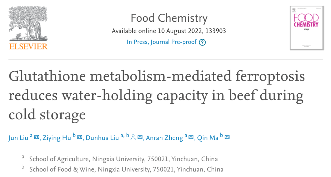 寧夏大學食品與葡萄酒學院劉敦華教授團隊:谷胱甘肽代謝介導的鐵死亡降低了冷藏期間牛肉的保水性