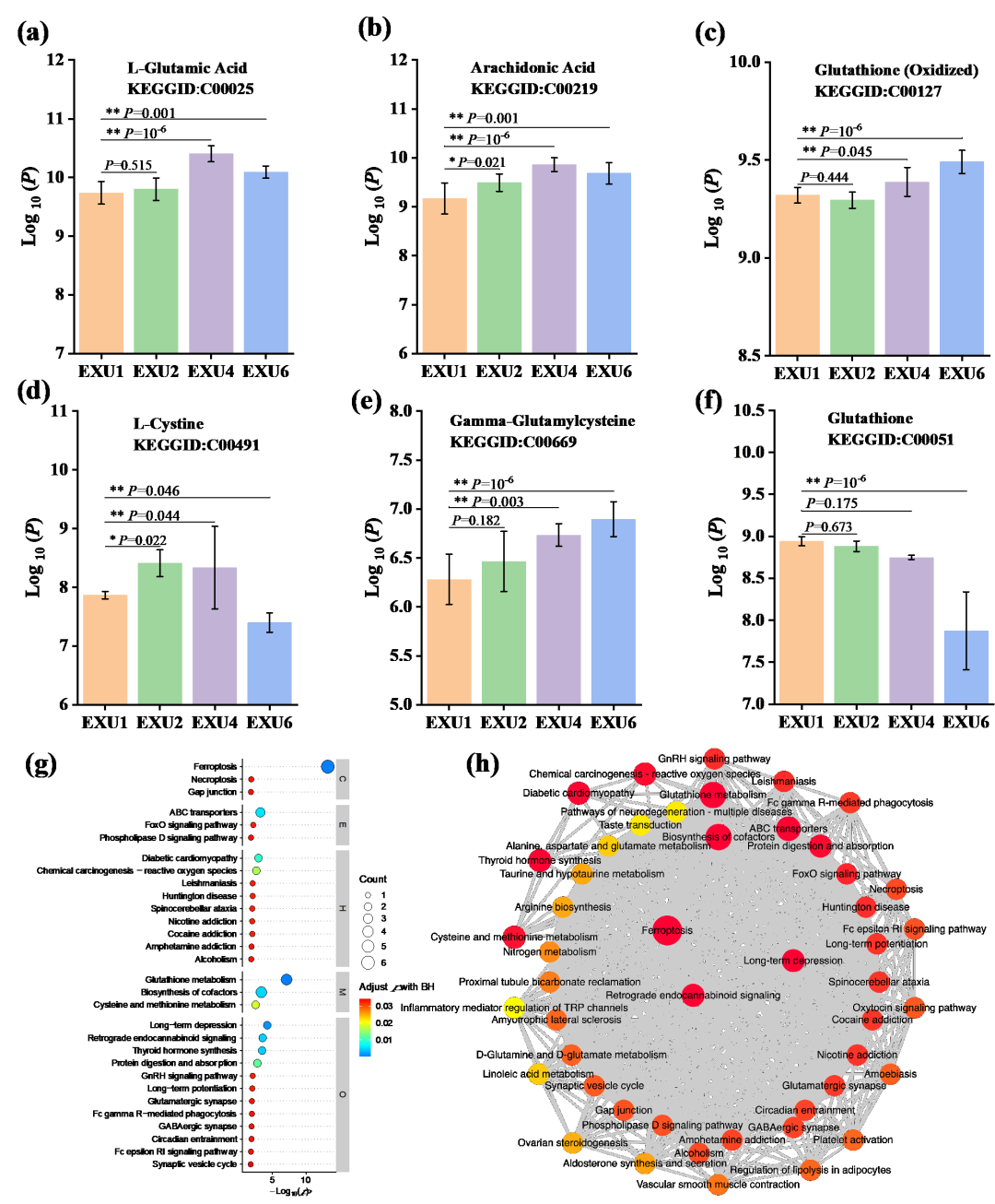 ScienceShare | 科學私享 谷胱甘肽代謝介導的鐵死亡降低了冷藏期間牛肉的保水性 導 讀 2022年8月10日,寧夏大學食品與葡萄酒學院劉軍、胡梓穎、劉敦華(通訊作者)在Food Chemistry (Q1,IF:9.231)發表題為 “Glutathione metabolism-mediated ferroptosis reduces water-holding capacity in beef during cold storage” 的研究文章。 保水性(Water holding capacity,WHC)是肉制品基本的質量屬性,冷藏牛肉保水性的研究對牛肉品質的改善和保持具有重要意義。牛肉在冷藏過程中肌肉中的水分不可避免的積聚在肉的表面,形成滲出液引起牛肉汁液和質量損失。這些滲出物富含多種蛋白質和代謝物,如血紅素(肌紅蛋白或血紅蛋白)、核苷酸、肽、氨基酸、可溶性酶和水溶性維生素,為牛肉樣本提供了豐富的生物學信息,并提供了可靠且易于獲取的實驗樣本,以揭示牛肉保水性的變化模式。由于滲出液樣品中物質成分的復雜性,本研究基于UPLC-ESI-Q-Orbitrap-MS 非靶向代謝組學方法分析滲出液樣品。通過收集4°C下儲存1、2、4和6天的牛肉滲出液進行代謝組學分析,并評估了儲存1天、2天、4天和6天的牛肉保水性的變化。在此過程中,通過分析差異代謝物的KEGG富集途徑,在第4天和第6天發現肌肉組織細胞鐵死亡過程。基于這一發現,該文重點研究了鐵死亡的發生機制以及鐵死亡對WHC的影響。 研究亮點 這是用于評估牛肉保水性的滲出液代謝組學研究。 在四個滲出液樣品中共鑒定出877種代謝物。 在差異代謝物富集途徑中確定了鐵死亡途徑。 鐵死亡依賴于谷胱甘肽代謝途徑。 鐵死亡伴隨著牛肉保水性的降低。 研究結論 基于非靶向代謝組學方法檢測冷藏1天、2天、4天和6天的四組牛肉滲出液,共檢測到877種代謝物,其中278種被鑒定為差異代謝物(DMs)。 KEGG途徑富集分析的DMs代謝途徑包括ABC轉運蛋白、嘌呤代謝、輔因子生物合成、蛋白質消化和吸收以及鐵死亡。 在牛肉冷藏期間發現鐵死亡過程,牛肉保水性的降低伴隨著鐵死亡過程。鐵死亡的KEGG途徑中鑒定出六種DMs,鐵死亡依賴于谷胱甘肽代謝過程的抑制。此外,使用鐵死亡誘導劑erastin處理體外分離培養的肌細胞,誘導鐵死亡進行功能驗證。 圖文賞析 研究思路 圖1 (a)冷藏期間牛肉保水性變化。(b)基于低場核磁共振分析冷藏期間牛肉的水分分布。(c)使用ROS染色評估冷藏期間牛肉組織的熒光強度。(d)基于TUNEL法評估冷藏期間牛肉細胞凋亡變化。不同字母(a-d)表示樣本之間存在顯著性差異(P < 0.05)。 圖2 四組滲出液中鑒定的代謝物進行多變量統計分析。(a)正離子(POS)中獲得的樣本的PCA得分圖。(b)負離子(NEG)中獲得的樣本的PCA得分圖。(c)POS中獲得的樣本的OPLS-DA得分圖。(d)通過POS中的置換測試(200次迭代)驗證OPLS-DA模型。(e)在NEG中獲得的樣本的OPLS-DA得分圖。(f)通過NEG中的置換測試(200次迭代)驗證OPLS-DA模型。EXU1、EXU2、EXU4和EXU6分別表示冷藏1天、2天、4天和6天的牛肉滲出液樣品。PCA中的QC表示質量控制參考樣品。OPLS-DA中的橫坐標表示隨機子組的Y與原始子組Y的相關性。縱坐標表示R2和Q2的得分。 圖3 (a)EXU1和EXU2DMs(KEGG)的分類。(b)EXU1和EXU2KEGG通路富集的氣泡圖(TOP30)。(c)EXU1和EXU4DM(KEGG)的分類。(d)EXU1和EXU4KEGG通路富集的氣泡圖(TOP)。(e)EXU1和EXU6DM(KEGG)的分類。(f)EXU1和EXU6KEGG通路富集的氣泡圖(TOP30)。通路分類:C是細胞過程,E是環境信息處理,G是遺傳信息處理,H是疾病,M是新陳代謝,O是有機體系統。 圖4 (a-f)鑒定具有KEGG ID參與鐵死亡細胞過程的DMs。(g)通過篩選與鐵死亡相關的6個DMs(TOP30)繪制KEGG通路富集氣泡圖。(h)通過篩選與鐵死亡相關的6個DMs繪制代謝路徑互作網絡。 圖5 (a和b)流式細胞法用于評估鐵死亡誘導劑erastin對肌細胞凋亡的影響。(c)肌細胞erastin誘導的GSH含量和GPX4活性的差異。(d)肌細胞erastin誘導的ROS水平和MDA含量的差異。(e)鐵死亡的分子機制示意圖。Control,無鐵死亡誘導劑erastin的成肌細胞培養基。Treatment,肌細胞培養基中加入10μmol/Lferroptosis誘導劑erastin。SLC3A2是溶質載體家族3,成員2;SLC7A11是溶質載體家族7,成員11;GSH,谷胱甘肽;GPX,谷胱甘肽過氧化物酶。 劉敦華 劉敦華,男,1964年12月出生,中共黨員,博士后。寧夏大學食品與葡萄酒學院教授、博士生導師。寧夏回族自治區家禽肉制品工程技術研究中心主任,銀川市高精尖缺人才。2006年7月江南大學食品學院畢業,獲食品科學專業博士學位。2012年12月江南大學、寧夏紅枸杞產業集團有限公司博士后工作站出站。國家食品生產許可認證專家,中國農學會農產品加工分會理事,寧夏食品工業技術學會副理事長兼秘書長,寧夏食品安全專家委員會成員,寧夏安全生產評審專家。主要研究食品科學與質量安全控制領域的教學與研究工作,先后主持和參加各類研究項目30余項,獲省部級科技進步獎4 項,發表學術論文100余篇,主持自治區級教改課題2 項。積極掌握學科發展的最新動態,理論聯系實際,解決理論及生產上的科研問題,在學術界響在良好聲譽和影響。 原文鏈接 https://doi.org/10.1016/j.foodchem.2022.133903 免責聲明:「原創」僅代表原創編譯,水平有限,僅供學術交流,本平臺不主張原文的版權,如有侵權,請聯系刪除。文獻解讀或作者簡歷如有疏漏之處,我們深表歉意,請作者團隊及時聯系我們(微信號:scienceshare-001),我們會在第一時間進行修改或撤稿重發,感謝您的諒解! 食品院校學者成果 (點擊機構頭像,查閱研究成果) 已推送專家團隊 (點