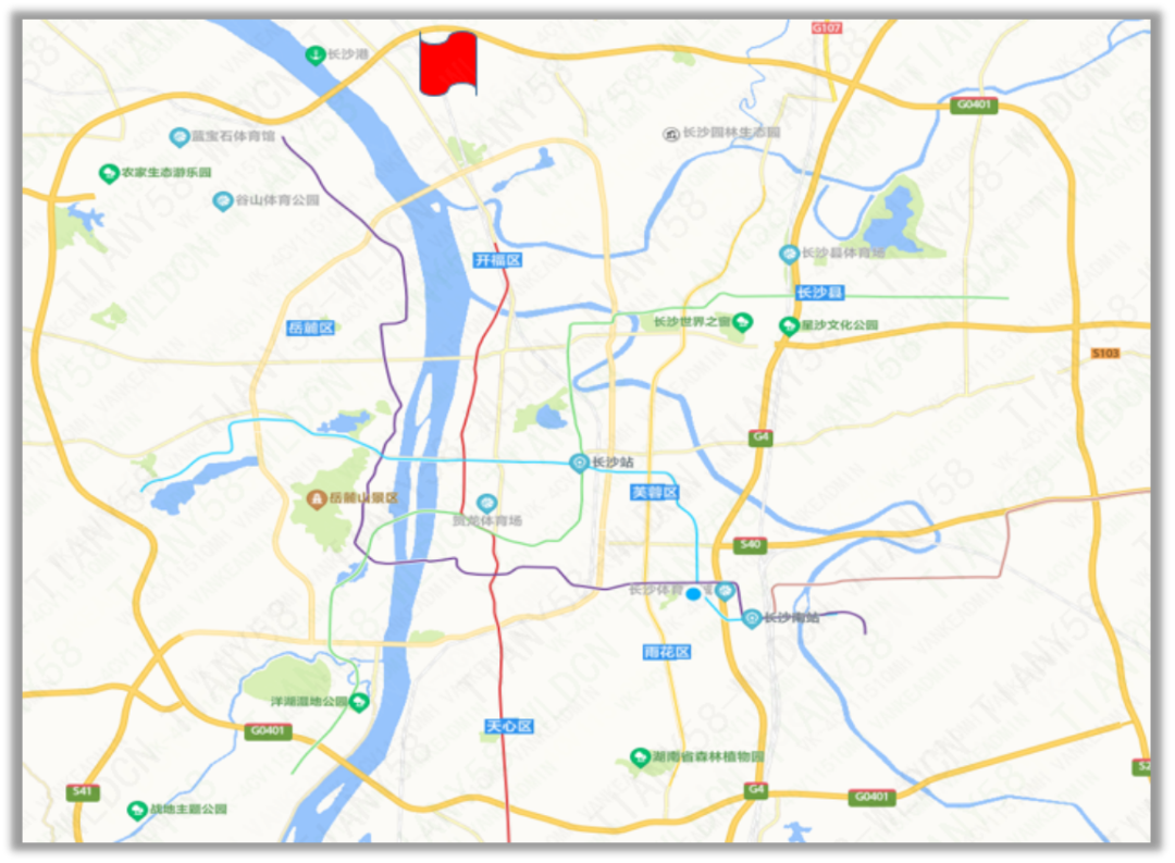 附近線路: 繞城高速、二環、開福大道、芙蓉北路,京港澳高速、許廣高速、杭長高速、滬昆高速、長芷高速。