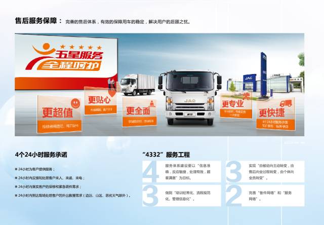 在價值服務方面,江淮帥鈴負責人介紹到,“江淮輕型商用車全球1700多家售后服務網點,4個24小時承諾,給客戶全天候、全方位、全生命周期的五星服務;同時,還可根據物流企業運營路線,提供“2”+ “S”定制線路服務,也就是將客戶運營路線的起點、終點兩個站點作為日常檢養、維修等服務的指定站點,并儲備相應車型的備件、服務調度支持;而在工作路線沿途提供維修、救援等全天候服務,打造系列化、全面化的服務網點系統。