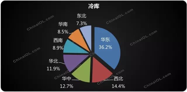 產業在線統計數據顯示,我國冷庫主要集中在華東地區,華東地區現有的冷庫容量占到了全國總容量的近四成。2016年華東地區冷藏車的銷售占比維持在三成以上,其中山東、上海、江蘇冷藏車銷量超過1000臺,銷售區域集中度較高。陳列柜市場所呈現的區域特征,即新增超市門店的區域布局也印證了這一點,2016年新增超市門店依然集中在華東地區,華東地區陳列柜銷售量增長,區域占比為35.6%。