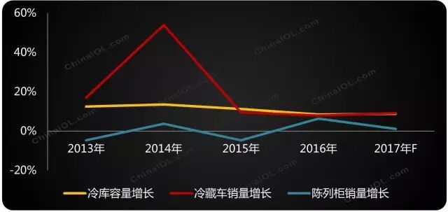 冷鏈物流的發展離不開冷藏車的運輸,目前冷藏車的數量遠遠無法滿足市場需求,2016年冷藏車銷量2.01萬臺,同比增長7.9%,增幅有所放緩。線上生鮮電商快速發展,直接沖擊實體商超。近兩年陳列柜市場受實體商超關店潮的影響,發展艱難。2016年,我國陳列柜行業銷售數量接近8.4萬臺,同比增長6.3%,出口拉動作用強于內銷。