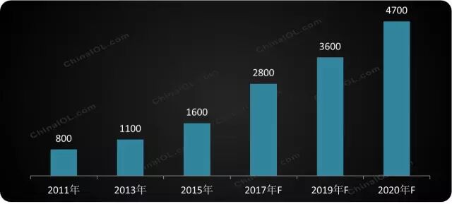 2011-2020F年中國冷鏈物流市場規模(億元)