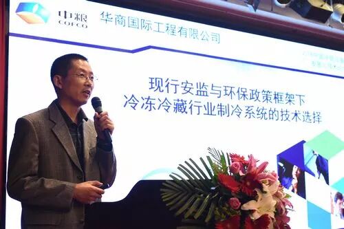 下午會議開始,由產研機構的專家和各企業代表分別發表主題演講。其中,國內貿易工程設計研究院制冷專業總工程師馬進先生分享了《現行安監與環保政策框架下冷凍冷藏行業制冷系統的技術選擇》。他首先對現行安監與環保政策框架、政策框架對冷凍冷藏行業的影響做了具體介紹,并分別從新建設施、現有實施兩方面對冷凍冷藏行業制冷系統的技術選擇做了重點說明。