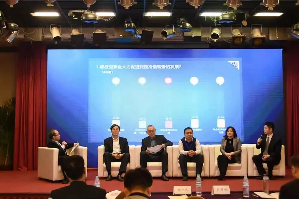 會議最后,是精彩的投票互動和嘉賓對話環節,現場所有來賓針對“行業發展”、“體系建設”兩個方面的七個問題進行了投票,中國制冷學會副秘書長楊一凡、全國制冷標準化技術委員會副主任委員劉小朋、濟南百福特制冷設備有限公司總經理唐威力、丹佛斯中國制冷事業部客戶培訓經理沙陸、產業在線董事長兼總經理楊潔、山東省魯商冰輪建筑設計有限公司副總經理劉杰等嘉賓則結合投票結果對冷鏈行業發展及標準制訂等方面進行了分析展望。