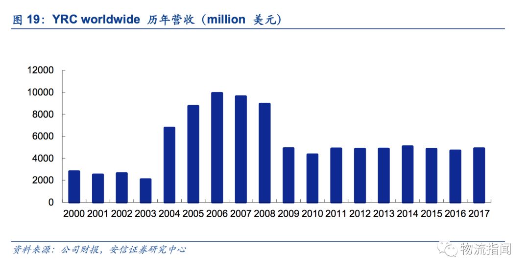 2003-2005年先后收購Roadway Corportation和USF,致使公司營收及利潤進入新階段;