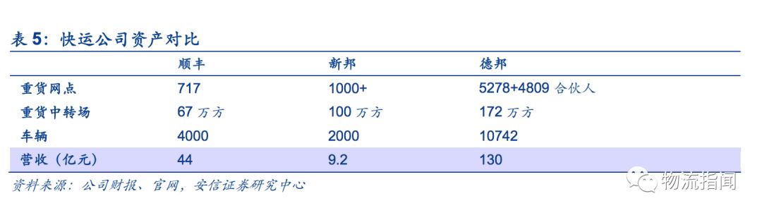 順豐開展的重貨業務為直營模式,協同原有的快遞網絡,公司自建中轉、干線及終端網點。截止2017年末,公司重貨網絡已成一定規模,公司擁有717個重貨網點、21個重貨中轉場、車輛4000余臺;相比較德邦,公司用了約4年的時間做到德邦約1/3的體量。