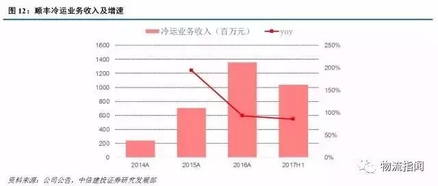 8月22日,順豐控股發布公告,其募集的80億元配套資金定向增發已經完成,其中7.18億元將用于冷運車輛與溫控設備的采購,包括冷鏈運輸車輛和EPP溫控箱,26.86億元將用于購置飛機和招募飛行員。8月26日,順豐控股披露2017年半年報,其中冷運業務是公司增速最快的業務之一,上半年業務收入10.34億元,同比增長85.56%,占公司總營收的3.22%。