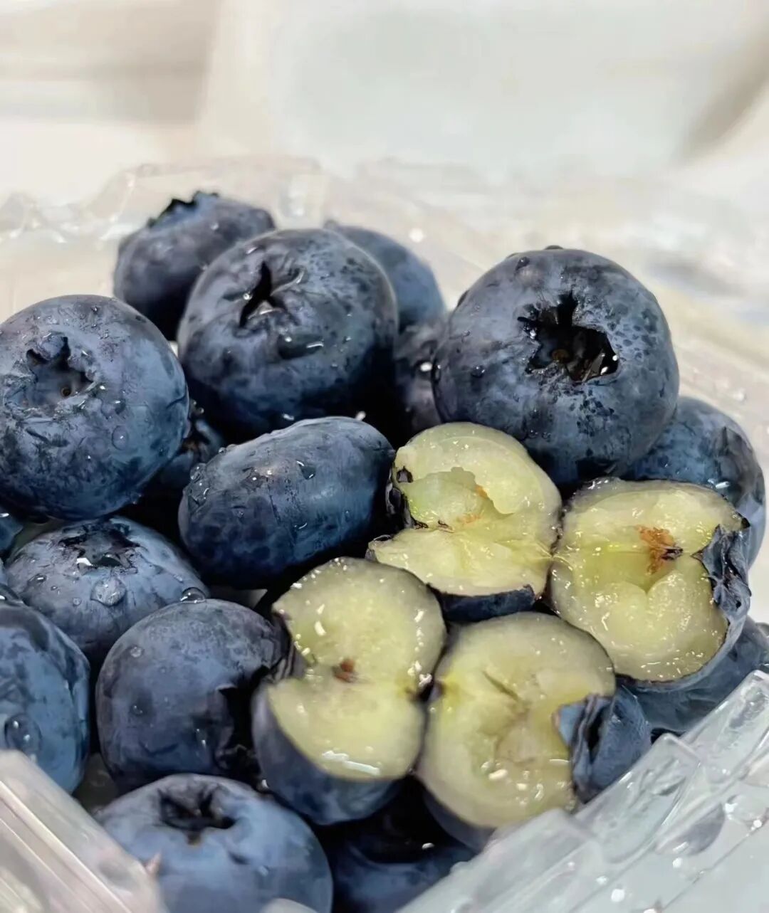 它們的外部都有一層天然的白色果粉 這是它們的保護機制 讓果實保持新鮮 防止藍莓內部水分蒸發