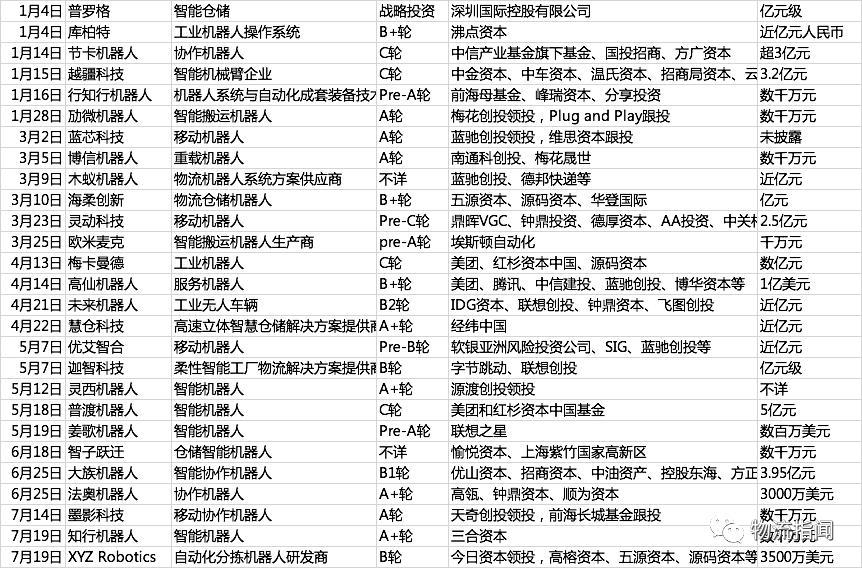 資本寒冬,這或許是之前兩年,包括物流在內諸多行業從業者的感受。但是今年,物流行業的一個共識是,第二波物流上市潮來了。京東物流、滿幫、東航物流、順豐房托等一批企業已成功IPO,順豐同城、昆船智能、欣巴科技、日日順、智加科技、安能、曠視、科捷智能、中科微至等大批企業正在上市路上,當然還有一批企業正在隱秘推進中。與其他行業相比,物流行業也顯示出了“吸金”能力。根據企查查大數據研究院發布的《2021上半年我國投融資大數據報告》,2021年上半年共發生4021起融資事件,同比增長45%。從融資金額TOP20項目看,芯片、物流、汽車最吸金;從行業來看,物流行業也位居投融資熱門行業TOP10之中,排名第9。那么具體來看,物流行業中哪些賽道最吸金?今年以來,又有哪些物流供應鏈相關企業完成了融資?物流指聞再度推出投融資盤點。根據統計,今年前7個月國內物流供應鏈領域共發生162筆融資事件,完整統計表附后,以下為簡析內容:據物流指聞梳理,今年物流科技、物流設備成為資本最為偏好的賽道,今年1-7月的多數融資事件與此相關。今年1月4日,普羅格官宣獲深國際億元戰略投資,揭開了今年物流領域投融資大幕。而后,一批機器人類企業紛紛宣布獲得融資,典型代表如海柔創新、靈動科技。而根據物流指聞統計,今年1-7月,國內發生的與智能倉儲相關的融資達27起,其中多與智能機器人相關。智能機器人的火熱,一方面源于擁有中國龐大的市場、豐富的場景,無論是物流還是工業都有大量的需求,尤其是在面臨勞動力變化的背景下;另一方面依托于中國制造,中國機器人面向海外依然有強大的競爭力。與此同時,國家層面如今對實體經濟與硬科技的重視,也讓資本敏銳的察覺到了信號。從資方角度看,除了美團、京東、德邦快遞出手投資外,我們也看到字節跳動也在連續出手物流科技,比如投資Syrius 炬星、迦智科技、未來機器人等企業,這也顯示出其電商野心,連番投資布局或是為未來與其電商、物流版塊形成產業協同。比倉儲機器人更加火熱的賽道,是自動駕駛。1-7月,國內該領域的融資事件達32起。地平線、希迪智駕、斯年智駕、馭勢科技、智加科技、白犀牛等等均獲得了融資。從應用場景看,自動駕駛有三大類:干線、短途以及港口等封閉園區。從現有進展看,港口等封閉園區等自動駕駛應用較為成熟,比如馭勢科技和上汽通用五菱合作的廠區無人物流項目,真無人(去安全員)的實際運營里程已經達到30萬公里,常態化運營的無人駕駛車輛達到百臺規模。另外,短途配送類自動駕駛今年上半年在路權開放方面獲得較大進展,北京率先向美團、京東物流、新石器三家企業頒發國內首批無人配送車車輛編碼,開放北京亦莊225平方公里路權。基于此,中金公司展望未來判斷:各場景的商業化探索漸次展開,有望將行業從實驗室快速推向現實場景。不過需要注意的是,干線領域,雖然圖森未來于上半年成功上市,成為了“自動駕駛第一股”,但是如今已經跌破發行價。由此可見,干線自動駕駛依然任重道遠,尤其在商業化探索方面,這一賽道依然考驗著玩家與資方的耐心。除了以上遠景宏大的賽道,一些實實在在帶來降本增效的技術類企業,也在贏得資本的青睞,比如車載智能稱重SaaS服務平臺漢德完成了B輪和B+輪融資,融資金額過億元;人工智能決策優化高新技術企業杉數科技完成近億元的B輪融資;一站式包裝智能協同平臺小象智合完成了A+輪和A++輪融資。
