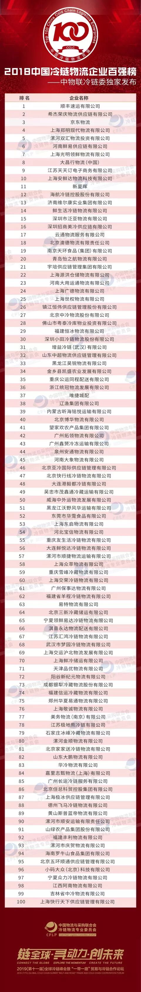 2018中國冷鏈物流百強名單發布 阿帕服務超十家