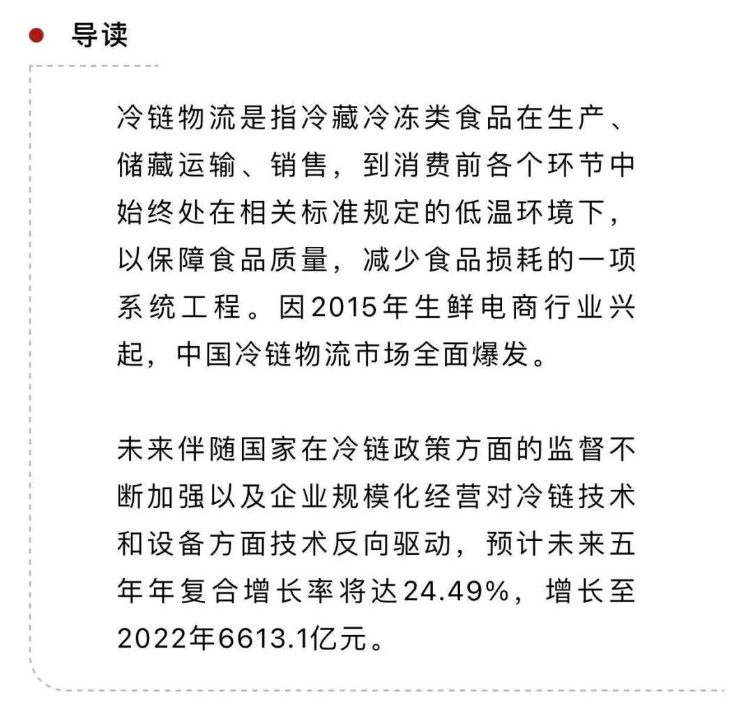 目前中國還沒有出現一家面向全國的綜合性冷鏈倉儲企業,隨著冷鏈運輸的需求日益明顯,區域性企業冷鏈物流將有望在未來升級為全國性冷鏈物流企業,甚至是全球性冷鏈物流企業。