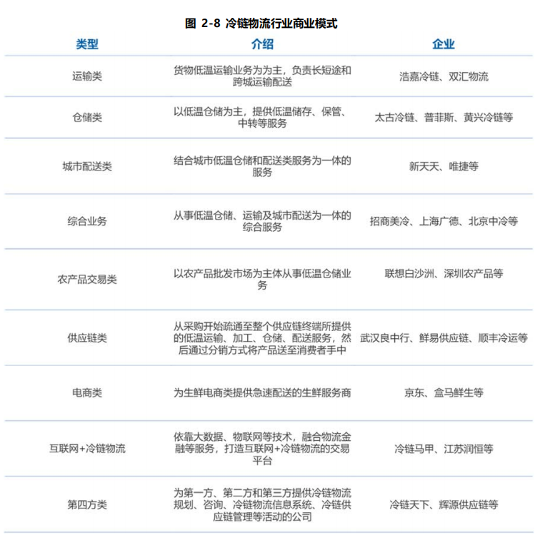 另一方面,冷鏈物流服務的運營模式已趨于成熟且種類多樣,每種不同的運營模式都有各自的特點及難點,且不同的運營模式在行業內已經出現了許多代表企業,它們已經積累了豐富的運營經驗和客戶群體。