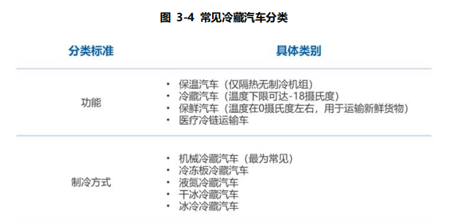 此外,還有運輸環節的公路修建、軌道交通建設以及航線開通等國家基礎設施建設的部分。按照功能或制冷方式的不同,冷藏車分類如圖: