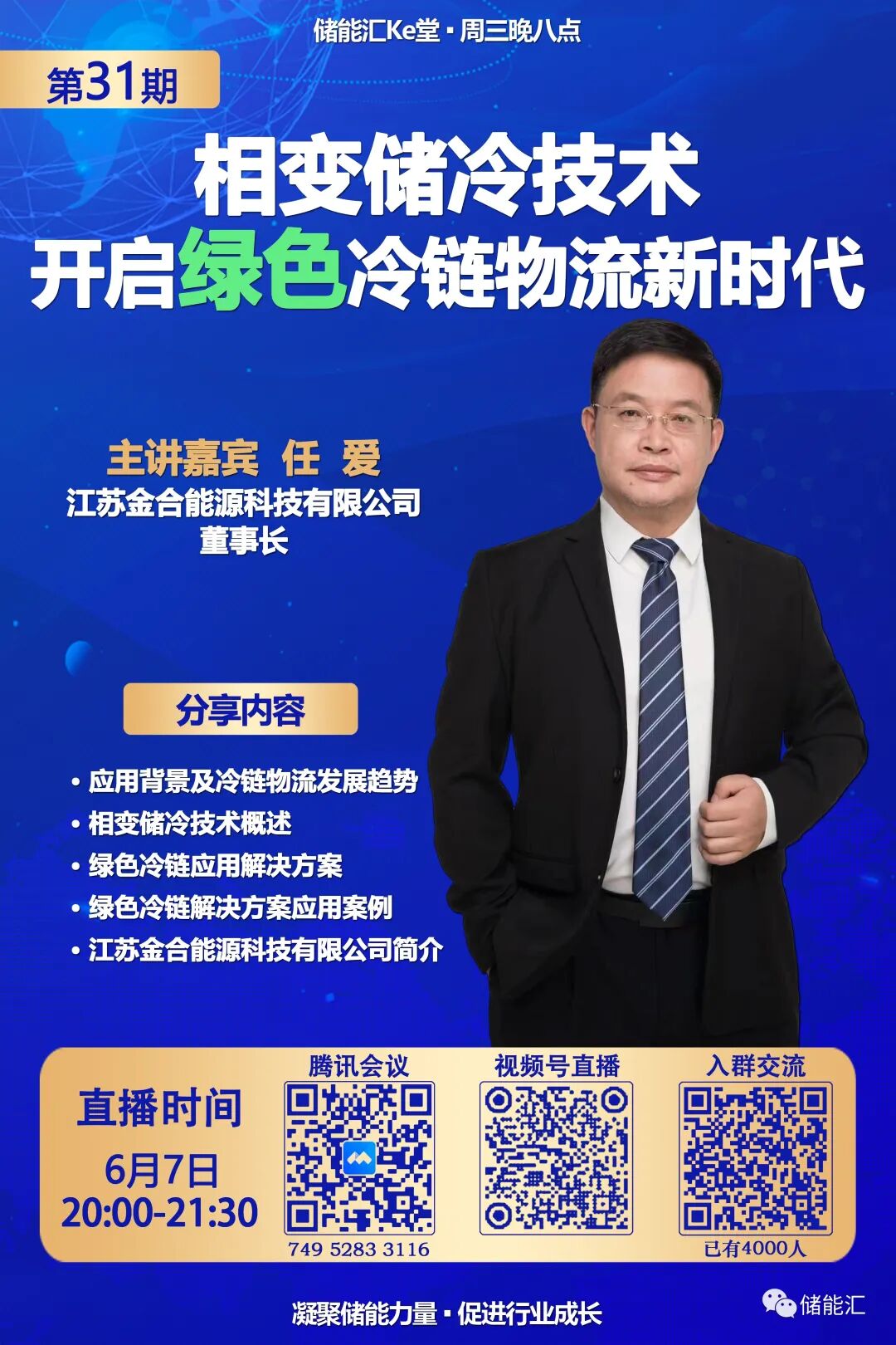 儲能匯于近期舉辦“儲能匯Ke堂”第31期線上活動,邀請到江蘇金合能源科技有限公司董事長任愛,以“相變儲冷技術,開啟綠色冷鏈物流新時代”為題,分享相變儲冷技術及其如何賦能冷鏈物流實現降本增效。