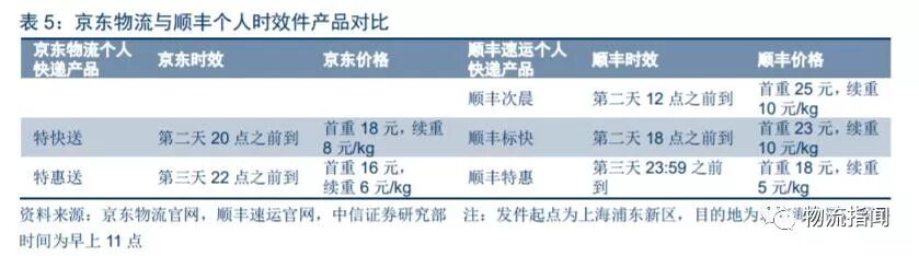 根據京東物流個人件的時效、價格、直營物流模式和較好的口碑,我們認為京東物流個人快遞件主打的是中高端時效及商務件。我們將順豐的時效件與京東物流的個人件進行如下對比: