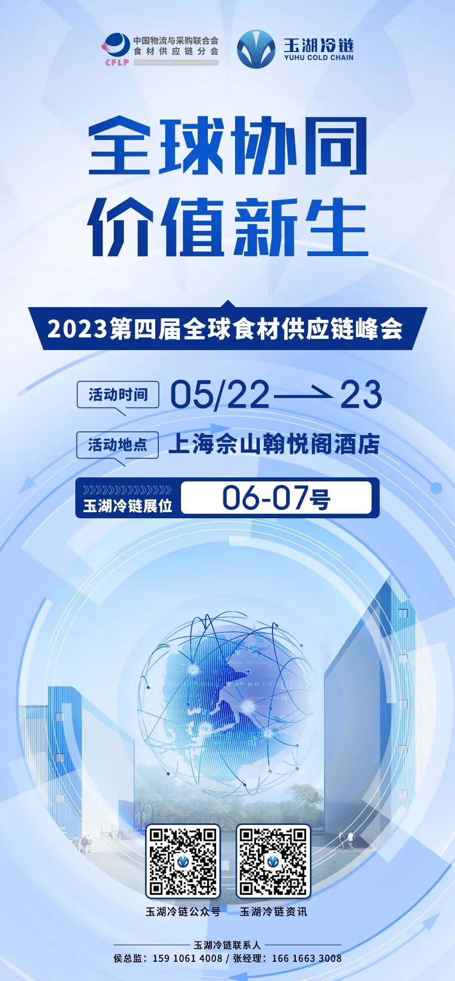下周起 玉湖冷鏈將出席 三大行業盛會 約起來! 1 CRE·2023第14屆 廣州酒店餐飲業博覽會 暨粵港澳大灣區餐飲預制菜產業展覽會 活動時間:5月17日-19日 活動地點:廣州廣交會展館B區 玉湖冷鏈展位: 13.1館 WT04 A(左) 玉湖冷鏈聯系人: 梁總監 13737762266 CRE廣州餐博會創辦于2011年,已成長為國內餐飲行業規模最大、影響力最強、品質最高的博覽會之一。 玉湖冷鏈專屬邀請碼↑ 本活動由廣東省餐飲服務行業協會、廣東省團餐配送行業協會主辦,全國各省市、港澳地區餐飲、烹飪協(商)會協辦,聚焦餐飲全產業鏈,推動線上線下深度融合。 2 SIAL西雅國際食品展(上海) 活動時間:5月18日-20日 活動地點:上海新國際博覽中心(浦東) 玉湖冷鏈展位:E6B098 玉湖冷鏈聯系人: 侯總監 15910614008 張經理 16616633008 展位示意圖 SIAL西雅國際食品展是全球領先的食品展,于2000年登陸中國,由法國高美艾博展覽集團、中國商業聯合會、北京愛博西雅展覽有限公司主辦。 掃碼注冊免費入場↑ 活動致力于推動全球食飲經貿合作與產業發展,「讓中國產品走向世界,把世界好產品帶進中國」,已成為世界多個國家創新食飲產品的首發平臺。 3 2023第四屆 全球食材供應鏈峰會 活動時間:5月22日-23日 活動地點:上海佘山翰悅閣酒店 玉湖冷鏈展位:06-07號 玉湖冷鏈聯系人: 侯總監 15910614008 張經理 16616633008 展位示意圖 2023第四屆全球食材供應鏈峰會,由中國物流與采購聯合會主辦、中國物流與采購聯合會食材供應鏈分會承辦,是食材供應鏈領域權威盛會。 會議主題為全球協同·價值新生,將邀請到國際國內多位重磅專家學者,舉辦多場專業論壇。 搶抓新機遇 共謀新商機 約起來! 玉湖集團是一家有二十多年歷史的跨國實業投資集團,玉湖冷鏈是玉湖集團旗下的冷鏈食品供應鏈企業,依托自有的國際高標數智化冷鏈園區產業集群,提供一站式國內外代采、倉干配物流解決方案、全鏈路創新金融支持、高品質生活辦公服務,打造線下流通標準,賦能線上數智貿易,構建雙循環產業生態,獲得「2022年度社會價值企業」殊榮。 目前,玉湖冷鏈廣州、成都、眉山、武漢四個項目均已開工建設,揭陽項目已完成土地摘牌,五個項目分別列為廣東、四川、湖北三省的省重點項目,是目前中國在建的最大冷鏈項目群。此外廣州項目在「十四五」期間廣東省與跨國企業合作發展項目中排名第一,是「廣州空港型國家物流樞紐」成員之一;成都項目是成都「國家骨干冷鏈物流基地」的重要組成部分;眉山項目入選四川省大型區域商品分撥配送中心試點項目;武漢項目入選武漢市綜合交通運輸發展「十四五」規劃重大建設項目、武漢市現代物流業發展「十四五」項目。 更多資訊,請關注以下兩個微信公眾號: