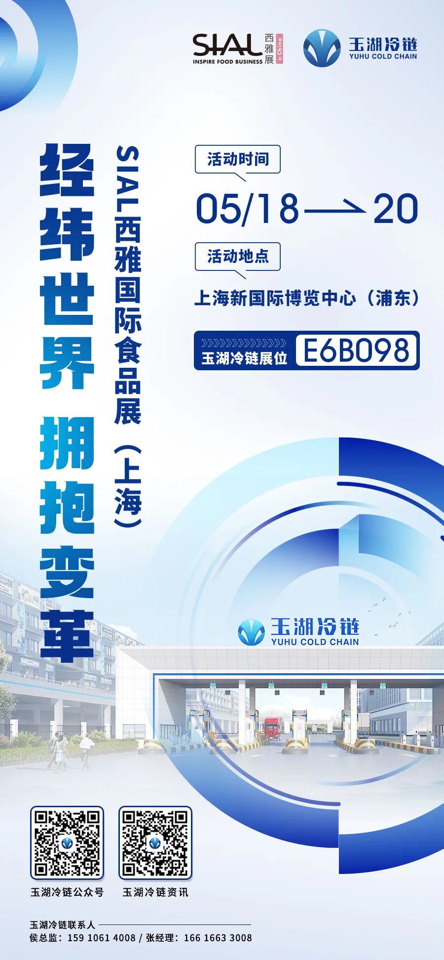 5月18日 SIAL西雅國際食品展(上海) 將隆重開幕 玉湖冷鏈將在大會亮相 約起來! SIAL西雅國際食品展(上海) 活動時間:5月18日-20日 活動地點:上海新國際博覽中心(浦東) 玉湖冷鏈展位:E6B098 玉湖冷鏈聯系人: 侯總監 15910614008 張經理 16616633008 展位示意圖 SIAL西雅國際食品展是全球領先的食品展,于2000年登陸中國,由法國高美艾博展覽集團、中國商業聯合會、北京愛博西雅展覽有限公司主辦。 掃碼注冊免費入場↑ 活動致力于推動全球食飲經貿合作與產業發展,「讓中國產品走向世界,把世界好產品帶進中國」,已成為世界多個國家創新食飲產品的首發平臺。 玉湖集團是一家有二十多年歷史的跨國實業投資集團,玉湖冷鏈是玉湖集團旗下的冷鏈食品供應鏈企業,依托自有的國際高標數智化冷鏈園區產業集群,提供一站式國內外代采、倉干配物流解決方案、全鏈路創新金融支持、高品質生活辦公服務,打造線下流通標準,賦能線上數智貿易,構建雙循環產業生態,獲得「2022年度社會價值企業」殊榮。 目前,玉湖冷鏈廣州、成都、眉山、武漢四個項目均已開工建設,揭陽項目已完成土地摘牌,五個項目分別列為廣東、四川、湖北三省的省重點項目,是目前中國在建的最大冷鏈項目群。此外廣州項目在「十四五」期間廣東省與跨國企業合作發展項目中排名第一,是「廣州空港型國家物流樞紐」成員之一;成都項目是成都「國家骨干冷鏈物流基地」的重要組成部分;眉山項目入選四川省大型區域商品分撥配送中心試點項目;武漢項目入選武漢市綜合交通運輸發展「十四五」規劃重大建設項目、武漢市現代物流業發展「十四五」項目。 更多資訊,請關注以下兩個微信公眾號: