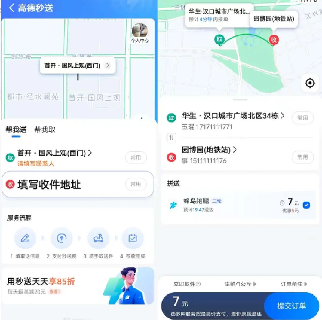 高德地圖入局跑腿賽道,測試快送業務“高德秒送”