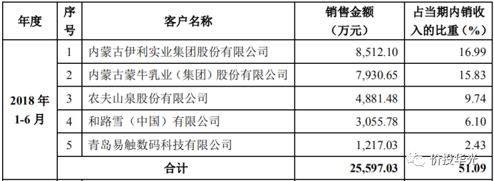 我們由此可以看出來,公司前五大客戶非常集中,并且都是國內知名廠商,伊利、蒙牛、農夫山泉等,這一類企業在國內乳制品與飲料領域,擁有非常高的品牌度,終端銷量的體量以及持續增長能夠保障未來需求的穩定在增長。但是,面對國內這種知名度高的廠商,公司的議價能力也確實不高,從毛利率上我們就能看得出來。
