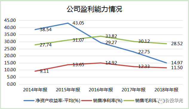 我們可以看見,公司的凈資產收益率是在下滑的,毛利率與銷售凈利率從2016年開始也有所下降,尤其是銷售凈利率,公司毛利率維持在30%上下,由此,公司凈利潤的受費用率與毛利率影響的敏感性就會很高,毛利率逐年下滑,而費用率也緩慢上升的話,就足以解釋公司近四年增收不增利的原因了。