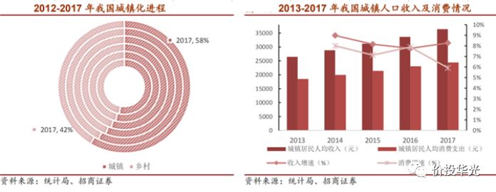 近年來我國城鎮化步伐加快,與 2012 年相比,常駐人口城鎮化率提高 5.95 個百分點, 增加 1 億多人;2017 年,我國城鎮常住人口 8.13 億人,城鎮人口占總人口比重(城鎮 化率)達 56.52%。