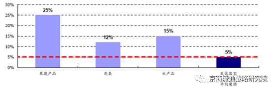 圖7我國與發達國家各種主要商品冷鏈流通率對比