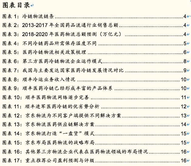 夯實網絡鏈條,并向逐步開拓醫藥客戶為戰略發力點。2018年,順豐從網絡建設、鏈條、技術創新3個方面發力,繼續向成為中國最有價值和最有影響力的醫藥健康供應鏈服務提供商的目標邁進。網絡方面,順豐將繼續完善醫藥物流底盤,通過多倉協同+干線運輸調度+航空運力補充逐步建立起全國“T+3”醫藥物流網絡;鏈條方面,優化倉干配全鏈條業務模式和運作流程,進一步提升-40℃至25℃多溫段溫控能力,提高資源使用效率和營運質量,未來3年還將通過6-7個核心物流中心,打造全國覆蓋的倉儲能力;技術創新方面,繼續加強醫藥冷鏈設備設施驗證管理技術和信息系統管理模式研發和創新。
