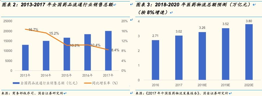 行業洗牌期,第三方物流企業加速布局。2016年醫藥行業的物流中,社會物流的占比不到20%,而日本和歐美國家的這一比例在50%左右。占據我國80%以上的中小型藥品批發企業由于技術落后、設施設備不足或沒有疫苗冷鏈配送資質被迫退出疫苗經營市場或尋求與第三方物流企業的合作。對第三方物流而言,通過與具備醫藥、零售藥店等終端網絡和分銷體系的醫藥流通企業建立戰略聯盟,發揮其物流服務優勢,是在行業加速洗牌的背景下打開市場的有效方式。