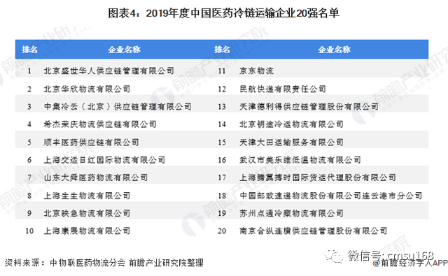 醫藥冷鏈物流作為醫藥物流行業的細分市場之一,近年來發展迅速。數據顯示,2019年,我國醫藥冷鏈銷售額達3395.03億元,同比增長20.1%;據中物聯醫藥物流分會預測,至2020年,我國醫藥冷鏈銷售額將突破4000億元。醫藥冷鏈市場規模的不斷擴大,為我國第三方醫藥冷鏈物流企業的發展提供了有利的市場環境。目前,我國醫藥冷鏈運輸的運營模式共分為三類,即自營管理、自營+外包和外包三方,其中外包三方就是外包給第三方公司進行醫藥運輸。據中物聯醫藥物流分會的調研數據顯示,目前,第三方醫藥冷鏈運輸企業的運行模式呈現以下三種特點:目前,在政策利好和市場需求的推動下,醫藥冷鏈市場涌現了一批優秀的第三方醫藥冷鏈運輸企業。2020年8月,中物聯醫藥物流分會公布了《2019年度中國醫藥冷鏈運輸企業20強》,其中,北京盛世華人、北京華欣物流、中集冷云、希杰榮慶、順豐醫藥位列榜單五強。具體如下表所示:從“20強”企業的省市分布來看,北京市醫藥冷鏈物流企業的整體競爭力最強,共有7家“20強”企業;其次是上海市,有5家企業上榜。版權聲明:除原創內容及特別說明之外,推送稿件文字及圖片均來自網絡及各大主流媒體。版權歸原作者所有。如認為內容侵權,請聯系我們刪除。