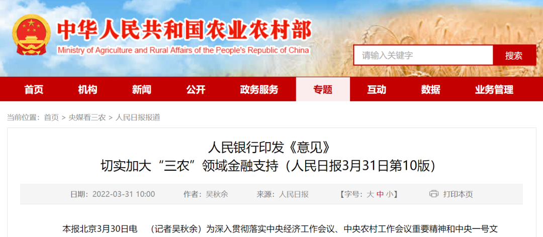 人民銀行2022年印發的《關于做好2022年金融支持全面推進鄉村振興重點工作的意見》指出,各銀行業金融機構要圍繞高標準農田建設、春耕備耕、糧食流通收儲加工等全產業鏈,主動對接融資需求,強化糧食安全金融保障。規范發展供應鏈金融服務,加大對重要農產品生產加工、倉儲保鮮冷鏈物流設施建設等金融支持。