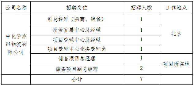 中化學建設投資集團有限公司所屬冷鏈物流有限公司招聘公告