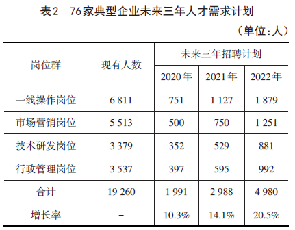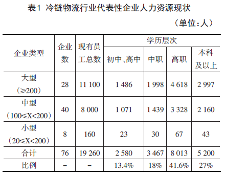 “十四五”時期,我國冷鏈物流業發展仍將處于重要戰略機遇期,在國民經濟中的產業地位將進一步提升,是構建新發展格局的重要支點。在疫情防控、數字化轉型、智能化改造、物流業與制造業深度融合、國際物流大通道建設等領域,迫切需要培養大量創新型的冷鏈物流技術技能人才,應對雙循環格局下的新消費場景發展的挑戰和機遇。 一、冷鏈物流行業技術技能人才需求情況 (一)冷鏈物流行業發展狀況 從行業發展規模看,相對于規模龐大的航空物流、工業物流等主要物流模式,冷鏈物流現有規模較小,但是冷鏈物流的重要性卻毫不遜色。在疫情的影響下,進口冷鏈食品需求依舊快速增長,國家食品冷鏈流通追溯平臺加速構建,冷鏈行業監管力度不斷加強,政策、資金和基建紅利逐步釋放,冷庫、冷藏車市場逆勢上揚。據中物聯冷鏈委和鏈庫數據平臺顯示,2020年全國冷鏈市場規模達到3740億元,同比增長10.3%,全國冷庫總量達到7080萬噸,折合1.77億立方米,同比增長17.1%,全國冷藏車保有量達到28.67萬輛,同比增長33.54%。隨著我國經濟水平和城鎮化率的不斷提升,以及一系列促進消費升級、擴大國內市場的政策實施,預計未來幾年我國冷鏈物流市場規模還將進一步擴大。 從行業發展重點看,冷鏈新基建和食品安全是我國冷鏈物流行業聚焦的主要領域。2020年一號文件再次強調冷鏈物流,國家市場監管總局、國家發展和改革委員會、農業和農村部、交通運輸部分別從加強基礎設施建設、完善產地冷鏈體系、加強冷鏈物流監管等角度發文促進行業發展。冷鏈新基建成為城市新基建的重要組成部分,首批17家國家骨干冷鏈物流基地評選公布,省市區縣各級冷鏈物流基地也在快速構建當中。新冠肺炎疫情很大程度上加速了進口冷鏈食品追溯體系的全面構建,該體系基本實現從海關入關到生產加工、批發零售、餐飲服務的全鏈條信息化追溯,可在線上排查、精準管控、現場處置等方面發揮重要作用。 從行業發展水平看,冷鏈物流企業的業務模式和服務范圍正逐步轉型變化。一方面,隨著生鮮電商、新零售、新餐飲等業態的爆發,京東物流、蘇寧物流、華商國際、順豐冷運等具有全國性服務能力的冷鏈物流企業開始出現。另一方面,企業業務類型逐漸交叉,更多企業開始謀求轉型。在我國,目前主要存在七種冷鏈物流發展模式,包括倉儲型、運輸型、城市配送型、綜合型、供應鏈型、電商型和平臺型。隨著企業業務的進一步拓展,各大企業逐步從單一模式開始向供應鏈型、綜合型模式轉型。 從技術發展方向看,冷鏈物流技術逐步走向智能化、數字化和低碳化。以云計算、大數據、物聯網、人工智能、云平臺等為代表的新一代信息技術的快速發展,正在不斷影響和改變冷鏈物流行業,賦予冷鏈物流行業發展技術創新的新機遇,已步入智慧冷鏈物流時代,冷鏈物流行業呈現智能化、平臺化、專業化和資源共享化。例如,順豐冷運已擁有定制化包裝、高蓄能冷媒溫控技術,倉儲溫度、濕度異常預警監測系統。材料學科在冷鏈物流裝備上的應用也有所成效,如利用新材料的相變潛熱來儲能的蓄冷技術應用等。 從行業發展布局看,我國區域間冷鏈物流均衡發展水平有待提高。地區間的差異主要體現在基礎設施建設區域分布不均衡、大型農產品批發市場及區域性農產品配送中心等關鍵物流節點缺少冷凍冷藏設施、跨省全程冷鏈配送載設備偏少等。以冷庫保有量為例,50%以上的冷庫集中分布在華東和華中地區,而作為我國瓜果等生鮮品主要原產地的西北地區,冷庫保有量僅占全國的4.5%。 (二)冷鏈物流行業技術技能人才需求分析 課題組結合行業布局,在全國范圍內開展了76家冷鏈物流企業的問卷調研和25家典型企業的訪談調研,覆蓋了大、中、小等各類型企業。其中,中型企業占52.6%,大型企業占36.8%,其余10.6%是初創的小微企業。 1 冷鏈物流行業技術技能人員從業崗位 按照生產與流通環節看,冷鏈物流行業的技術技能崗位群主要包括冷鏈采購與供應鏈管理、冷鏈運營、冷藏庫管理、冷鏈運輸、質量控制、物流信息管理及流程優化等崗位。按照工作性質又可分為一線操作、市場營銷、技術研發和行政管理等崗位。根據企業調研的結果,76家企業共有員工19260人,其中,一線操作人員有6811人,占35.4%;營銷人員有5533人,占28.6%;研發人員有3379人,占17.5%;管理人員有3537人,占18.5%。由此可見,基層作業人員(包括一線的營銷人員和操作人員數量)占所有人員的比例最高,達到了63.5%,研發人員和管理人員基本持平,各占18%左右。 2 冷鏈物流行業技術技能人員從業規模和學歷結構 項目組對76家冷鏈物流行業典型企業調研發現,從學歷層次上看,本科及以上畢業生占比為27%,約為5200人;高職畢業生占比為41.6%,約為8013人;中職畢業生占比為18%,約為3467人;初中、高中畢業生占比為13.4%,約為2580人,見表1。 根據大部分企業人力資源部門反饋,初中、高中和中職畢業生錄用人數逐年下降,高職、本科及以上畢業生錄用人數呈上升趨勢。這說明冷鏈物流行業的發展越來越專業化,越來越要求相關從業人員具有專業背景,高職畢業生將成為冷鏈物流行業的主力軍。 從專業背景看,冷鏈物流從業人員具有本專業教育背景的比例整體較低,相當一部分是從物流、市場營銷、電子商務、信息技術、管理甚至工科領域跨界轉行,尚未