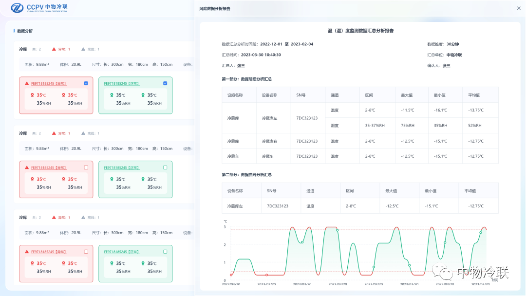 冷鏈設備管理 維護保養管理 按照日常設施保養維修形成維保檔案,符合GSP法規要求,將日常工作著實落腳在我們的每個系統環節中歸檔。 通過運用AIGC技術,構建以“云、數、智”三位一體的醫藥驗證服務系統,實現方案在線定制,過程全程把控,數據自動加密,結論可溯可查。綜合運用數據分析引擎,進行數智分析及風險研判。 05 風險應急管理 建設風險的識別、分析、處置、評價的閉環管理過程,進一步發現重點領域日常監控中帶有普遍性、規律性的高風險行為特征,實現早發現、早預警、早處置、可控制。 中物冷聯(成都)認證服務有限公司,我們是一家專注于醫藥驗證服務的第三方驗證機構,公司秉承“嚴謹、規范、公正、高效、專業”的經營理念,致力于為客戶提供“數智賦能,全程感知”的優良服務。 公司堅持以科技創新驅動行業更新,目前已開發出業內領先的、具有自主發明專利和知識產權的醫藥驗證設備和驗證數字化服務系統。 未來,公司將積極參與醫藥和冷鏈行業相關標準制定與推廣,努力推動行業標準體系建立,全力打造數字化協同認證服務平臺。