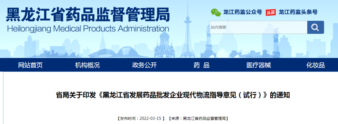 3月15日,黑龍江省藥監局發布《黑龍江省發展藥品批發企業現代物流指導意見(試行)》(以下簡稱《指導意見》)。