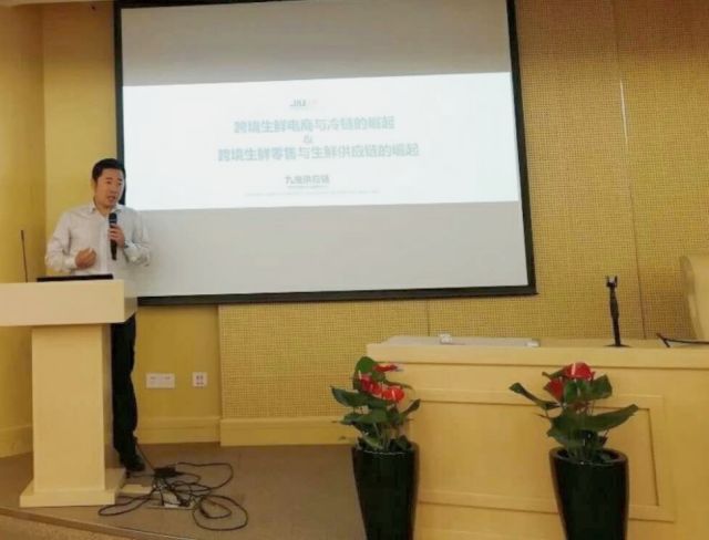 隨即是九曳供應鏈的銷售副總監郭景麒先生為在場的嘉賓將“跨境生鮮電商與冷鏈的崛起”結合“跨境生鮮零售與生鮮供應鏈的崛起”起來做主題演講。郭總先從跨境生鮮發展背景著手,對進口肉類,海鮮,水果三大類的數據展開分析。由于跨境生鮮的種類需求的增加,跨境生鮮不斷發展,對于供應鏈企業來說,既是機遇也是挑戰,催動著跨境生鮮的深度及廣度的發展。