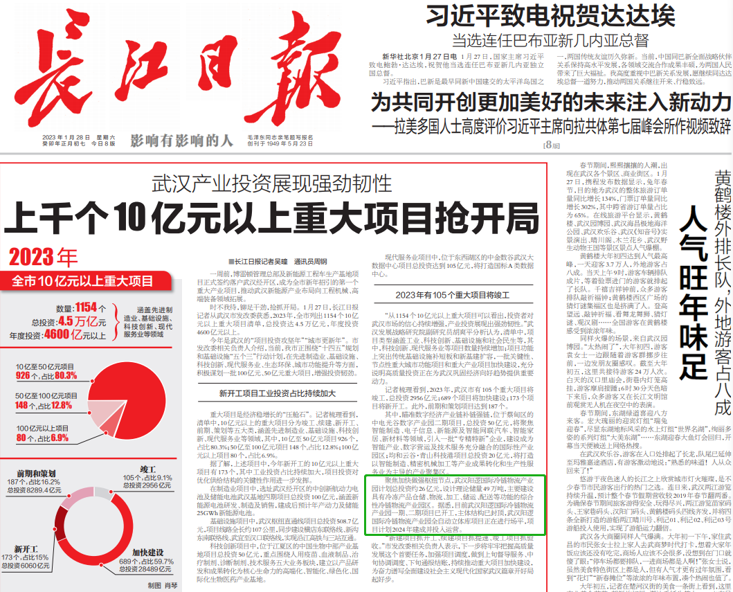 記者梳理看到,2023年,武漢市有105個重大項目將竣工,總投資2956億元;689個項目將加快建設;173個項目將新開工。此外,前期和策劃項目達到187個。