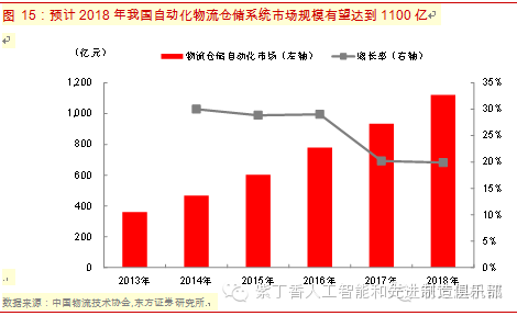 往前看,我們判斷在2-3年之內國內物流倉儲自動化市場仍可維持+30%的增長,到2018年有望成長為一個千億元容量的大市場。