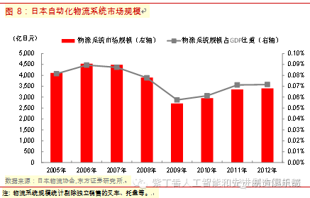 根據日本物流協會的統計,日本自動化物流系統的市場規模約為3000-4500億日本,約合160-240億元人民幣。