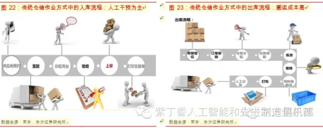自動化 – 突破物流瓶頸的高效解決方案:電商在倉庫運營環節面臨的6個挑戰:訂單數多,時效性要求強,單據打印多,顧客選擇商品隨機性強。傳統的作業流程從上架到最后的交接,不論是入庫、上架、出庫、下架,都需要大量的人去進行人工操作,耗時耗力。還有如移貨、補貨、盤點等一系列操作都是需要大量的搬運和行走的工作,這樣的方式十分低效。而自動化分揀和倉儲系統可以最大程度地為訂單執行提速,以京東在上海嘉定的“亞洲一號”為例,使用后可將發貨速度縮短一半,并且分揀速度高達每小時1.6萬件,我們測算峰值可支持上億元的單日出貨量。