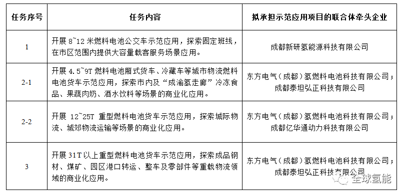 在成都市經信局發布的《2022-2023年度成都市燃料電池汽車示范應用項目擬承擔“示范應用聯合體”牽頭企業公示》中,東方氫能承擔了4個示范應用項目中的3項,成為示范應用場景最多的牽頭企業。