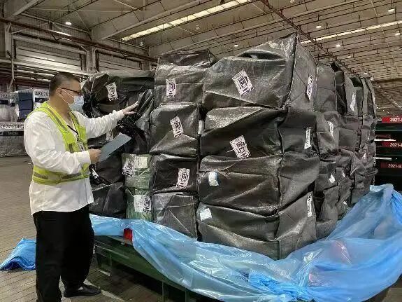 上午10時,記者在南航物流遼寧大連分公司貨站看到,400多箱大連海鮮擺放在卸貨平臺上,工作人員正忙著收運海鮮,包裝完成后入庫、配運、裝機。
