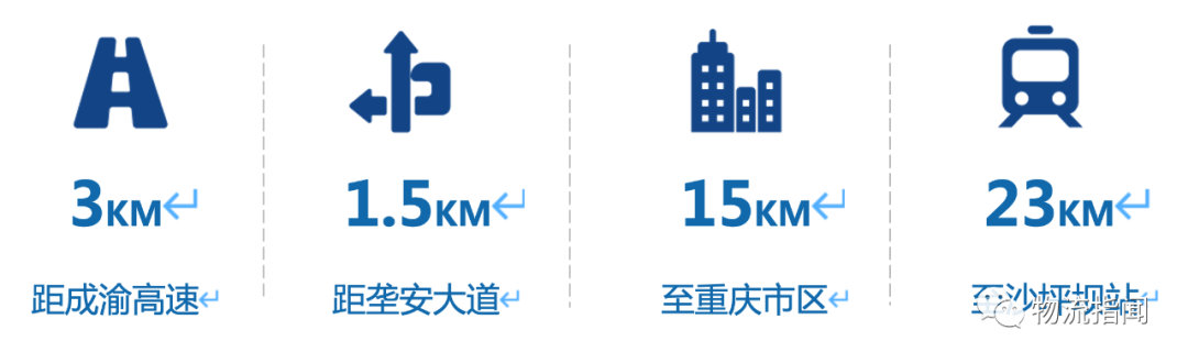 項目位于前文提到的重慶市沙坪壩區西部物流園,輻射西南、西北、長江中下游、華南的物流樞紐及分銷配送中心,是國內最具現代化的物流服務區和產業綜合發展區。它距成渝高速3KM,至團結村鐵路集裝箱站2KM,距重慶市區15KM,交通優勢十分明顯。